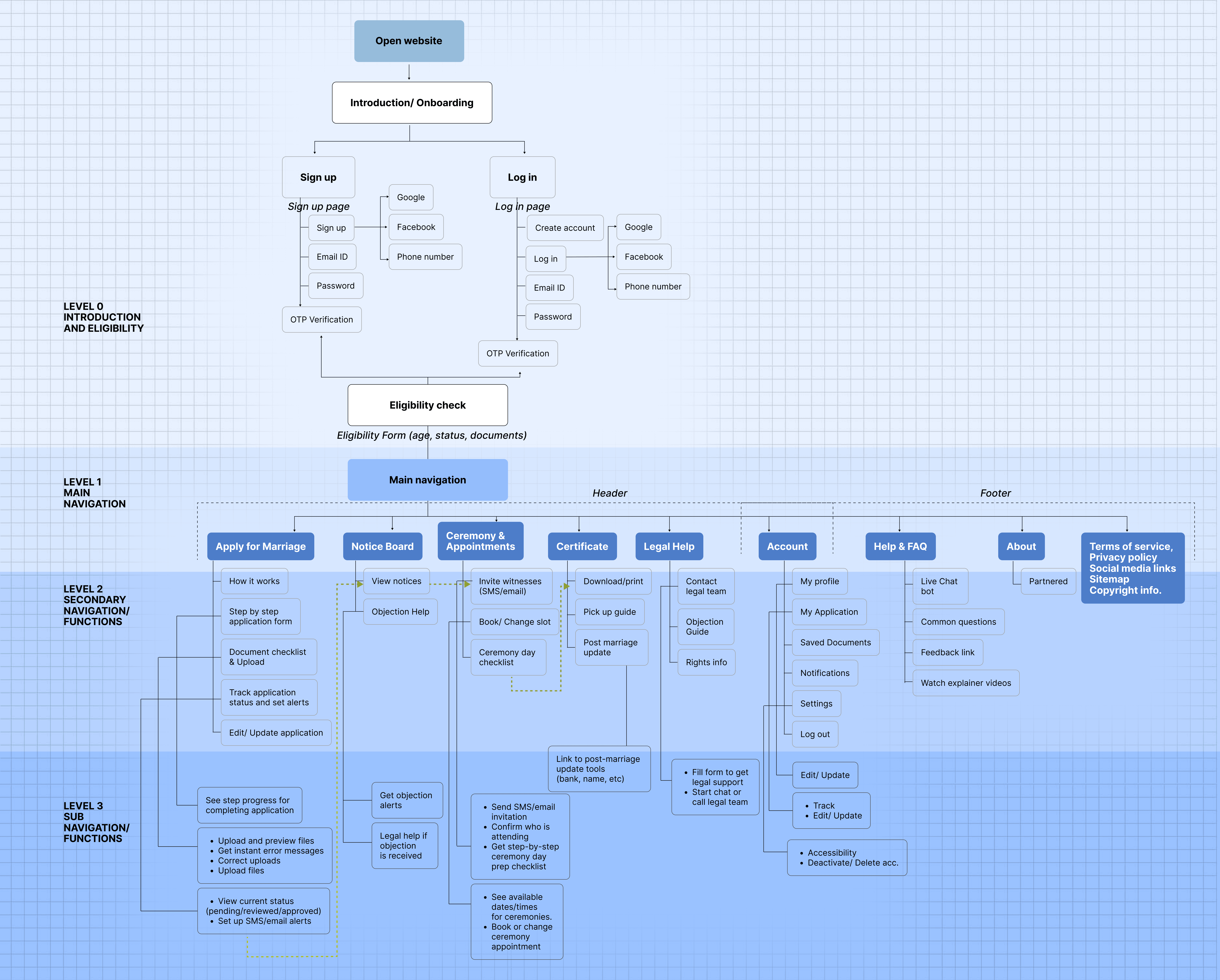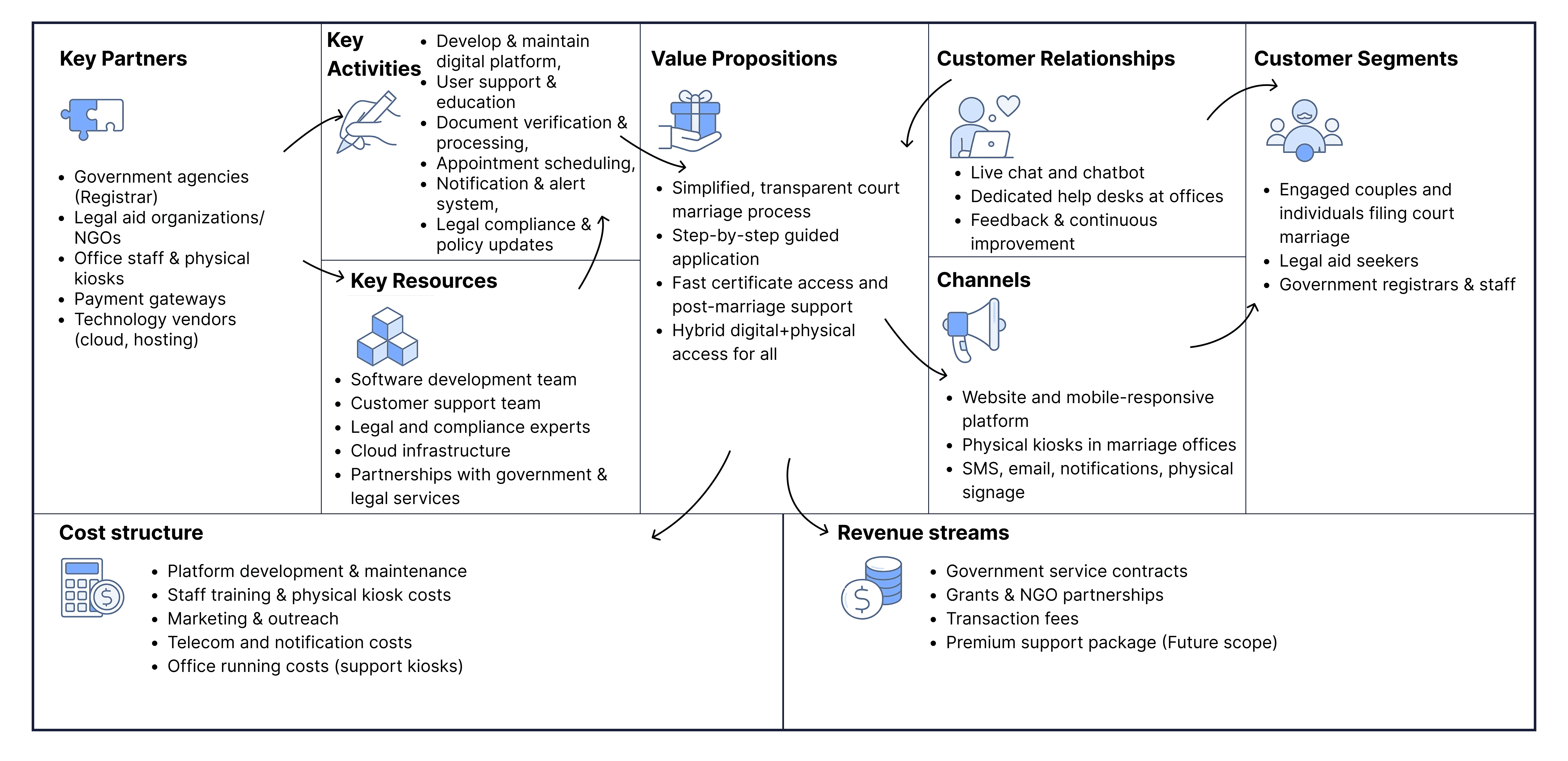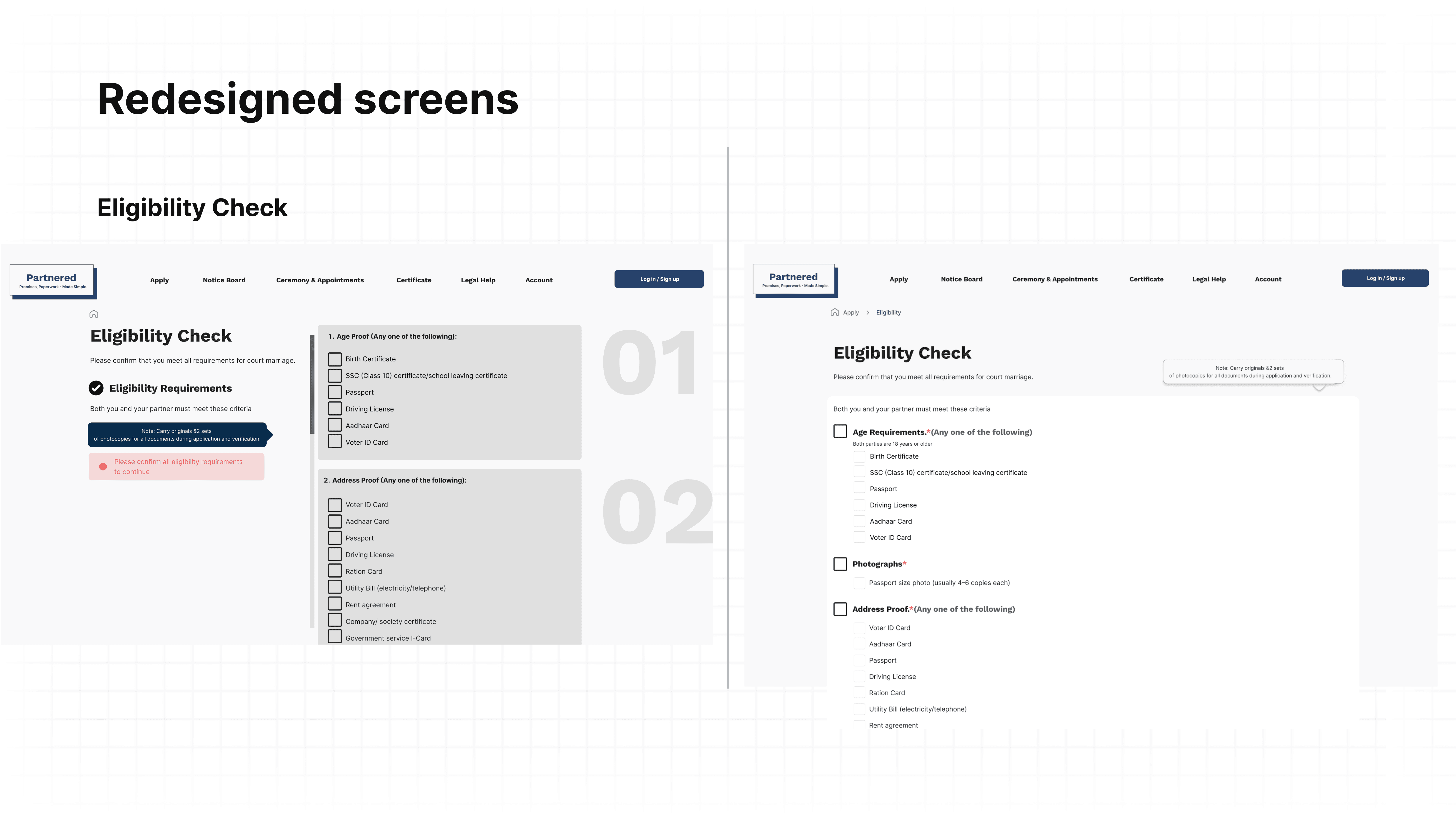 Design a phygital (physical + digital) platform that transforms the court marriage process in India into an accessible, error-proof, and privacy-respecting journey. The service simplifies documentation, enables status tracking, and integrates supportive physical touchpoints such as printed guides, consultation kiosks, and on-site document assistance, ensuring couples experience both digital convenience and the reassurance of human guidance.