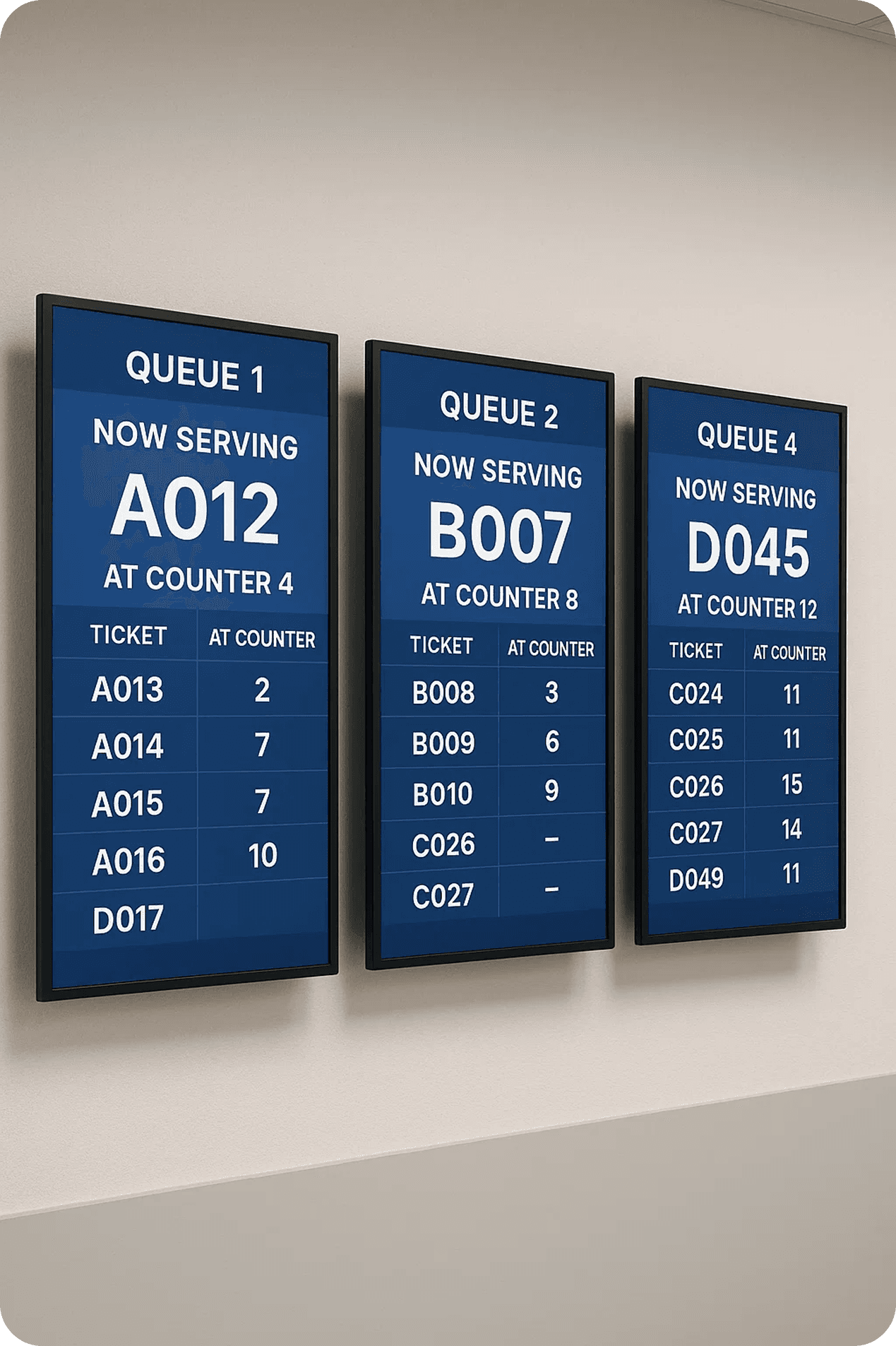 → Digital displays in offices showing queue status in real-time, reducing uncertainty and perceived wait time.