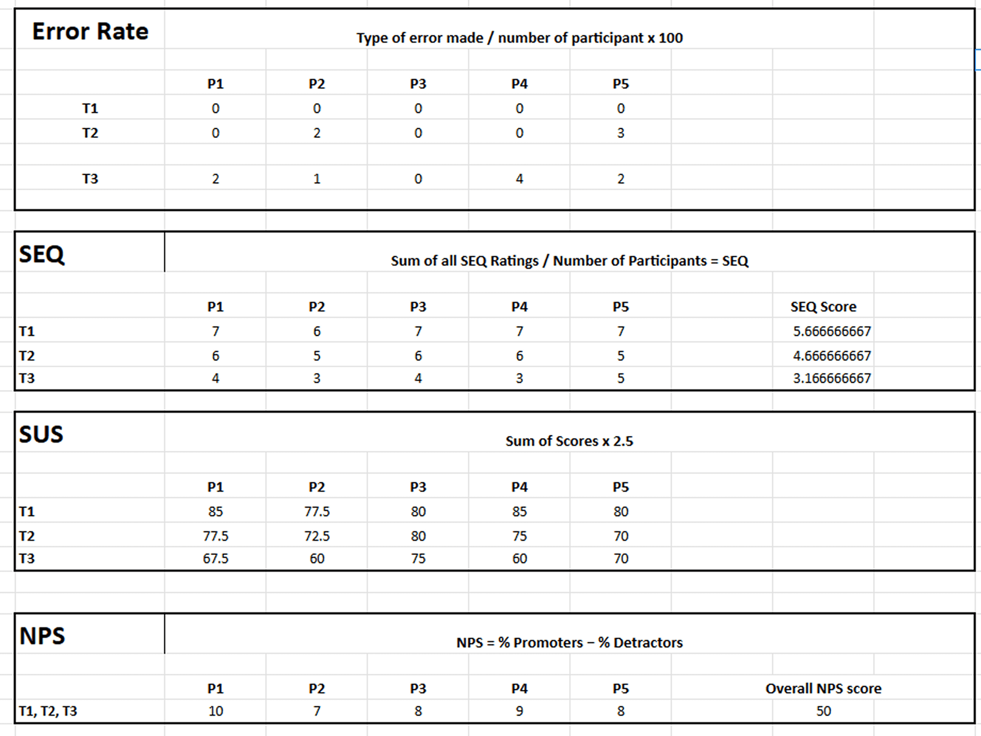 For detailed readings check out: Usability Test Evaluation - Google Sheets