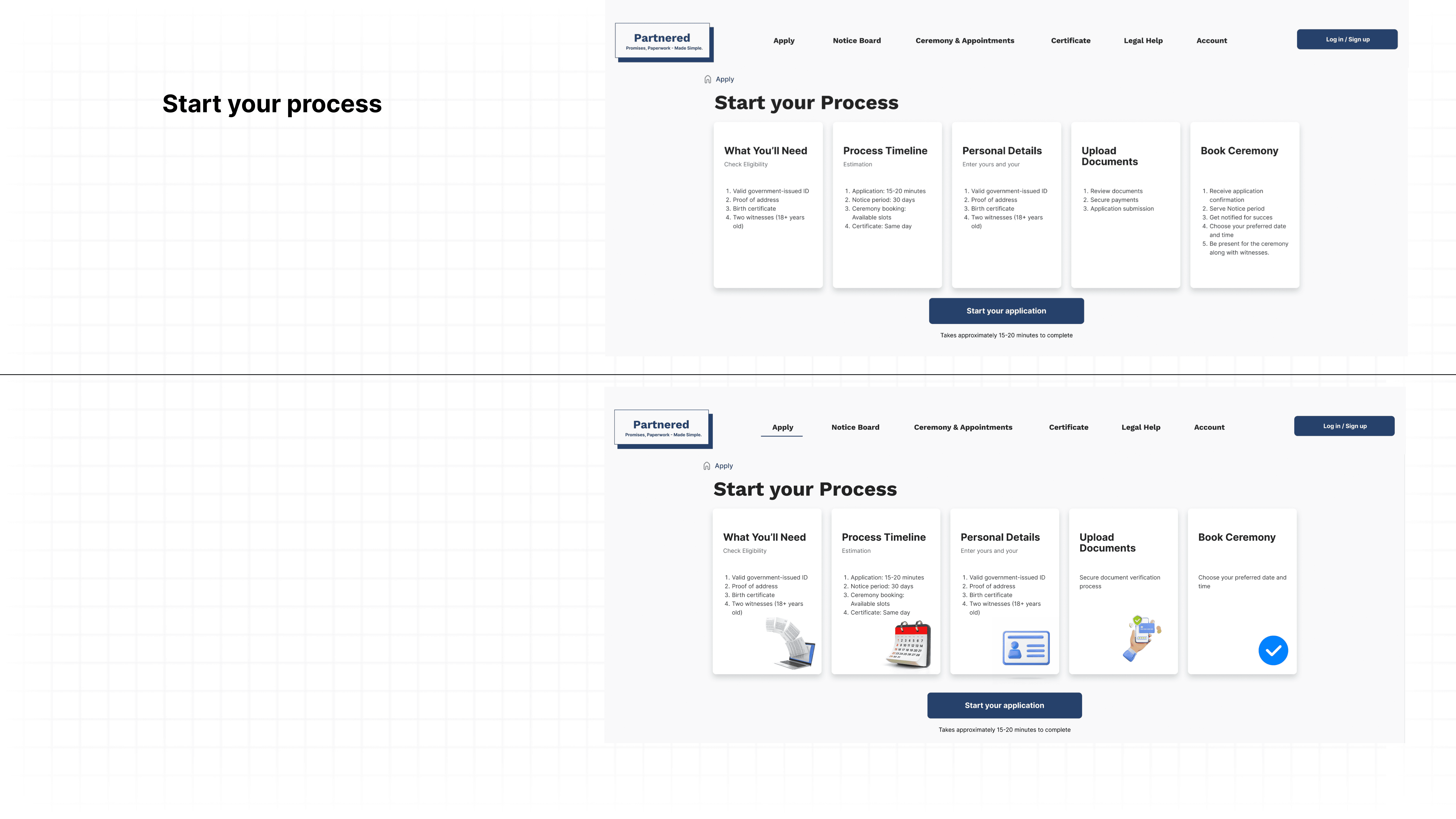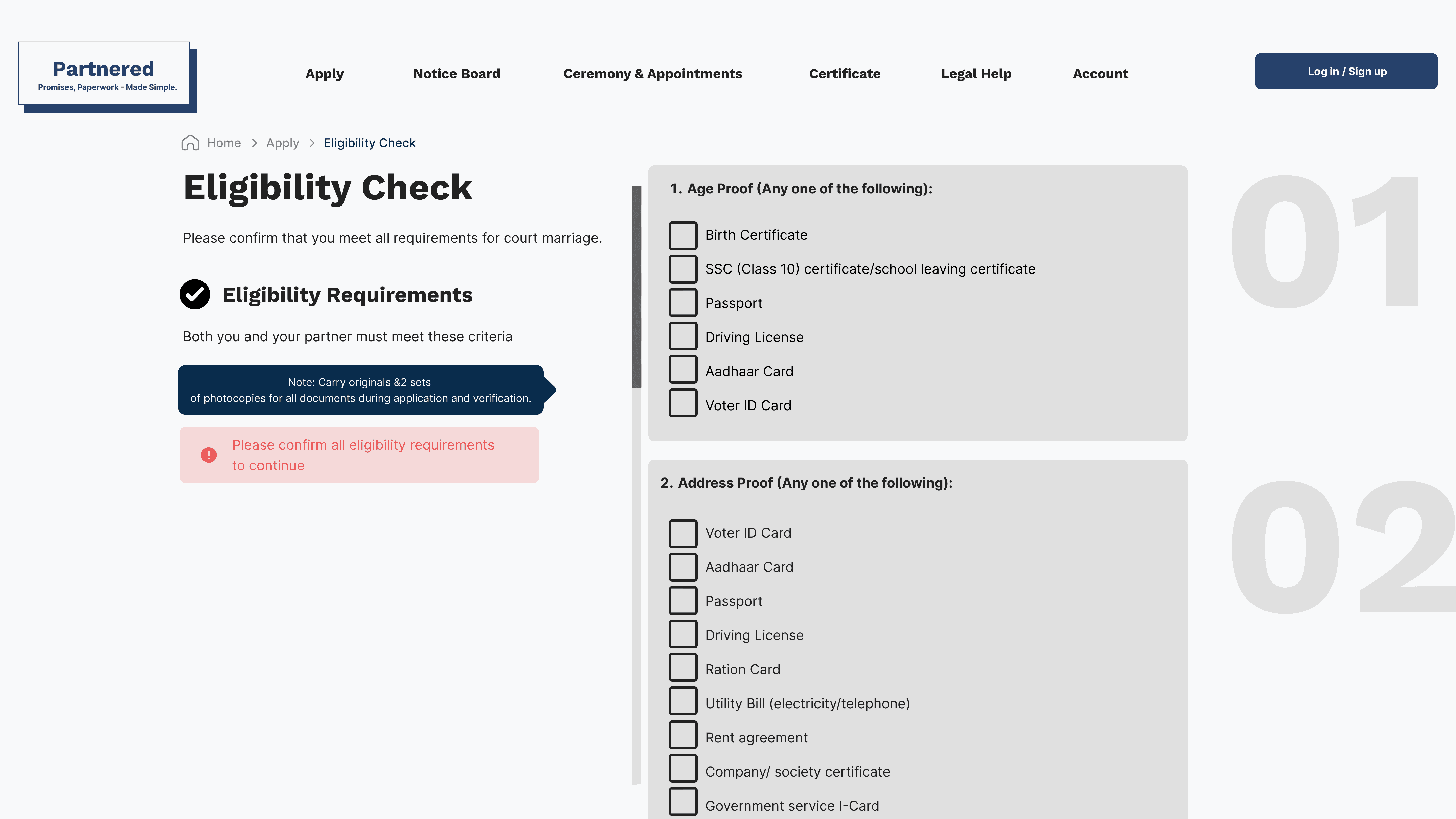 Evaluate the clarity, efficiency, and inclusivity of the onboarding experience and document upload process for users registering a marriage online.